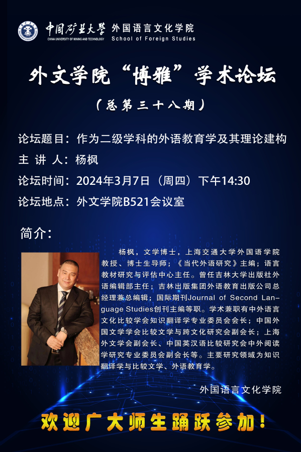 外文做爱直播 “博雅”学术论坛(总第三十八期)作为二级学科的外语教育学及其理论建构
