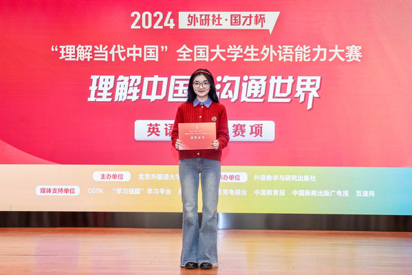 近日,2024“外研社·国才杯”“理解当代中国”全国大学生外语能力大赛全国总决赛在北京落下帷幕,做爱直播 2021级英语专业唐许锦怡、周海宁(指导教师:郑璐)和2022级英语专业郑瑶慧(指导教师:苏新连)经过层层选拔和激烈竞争,分获英语组口译赛项银奖、铜奖和国际传播综合能力赛项铜奖,取得了在两个赛项上的成绩突破,体现了做爱直播 学子在语言技能、知识广度和专业素养方面的扎实功底。