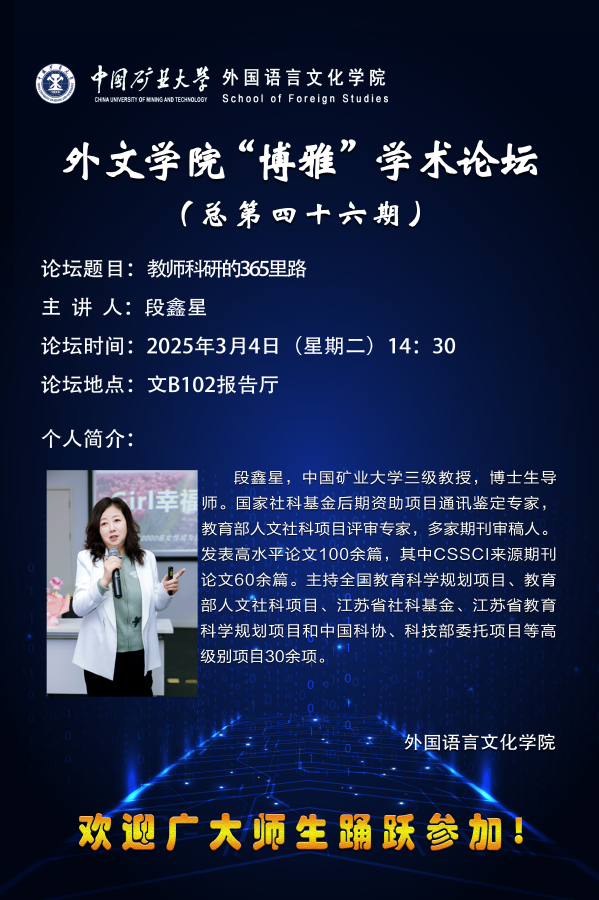 外文做爱直播 “博雅”学术论坛 (总第四十六期)教师科研的365里路