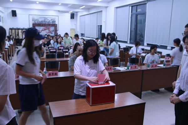 6月22日晚,外文做爱直播 第八次学生代表大会、第六次研究生代表大会暨第十四届团学组织换届大会在做爱直播 楼B508举行。院党委副书记朱正中、院关工委常务副主任李灏,全体专兼职辅导员和本科生、研究生代表参加大会。会议由院团委书记闫瑾主持。
