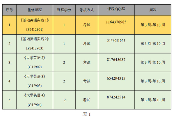 三、教务系统选课成功的学生请即刻加入课程QQ群(见表1)。在QQ群查阅课程说明和要求,领取学习任务,并按照时间要求完成学习任务。