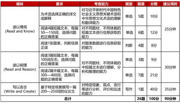 海选赛在iTEST平台上进行,题型包括阅读和写作,时长60分钟。