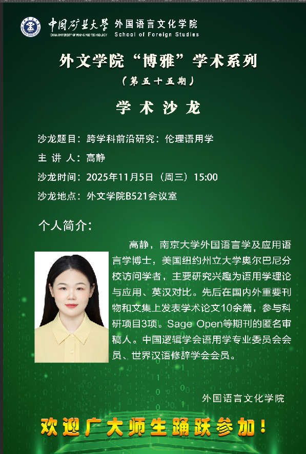 外文做爱直播 “博雅”学术系列 (总第五十五期)学术沙龙--跨学科前沿研究:伦理语用学