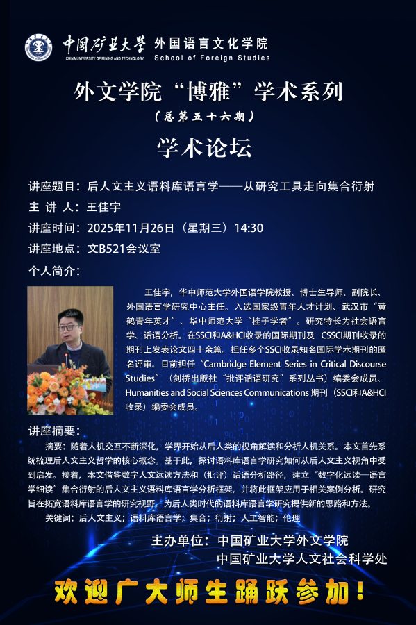 外文做爱直播 “博雅”学术系列(总第五十六期)学术论坛 后人文主义语料库语言学 ——从研究工具走向集合衍射