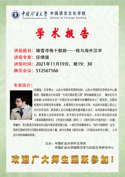 学术讲座:踏雪寻梅十载路——我与海外汉学
