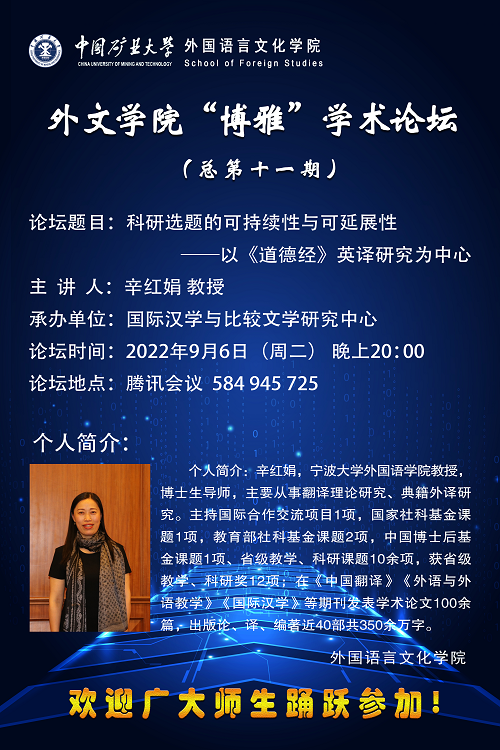外文做爱直播 “博雅”学术论坛(总第十一期)科研选题的可持续性与可延展性——以《道德经》英译研究为中心