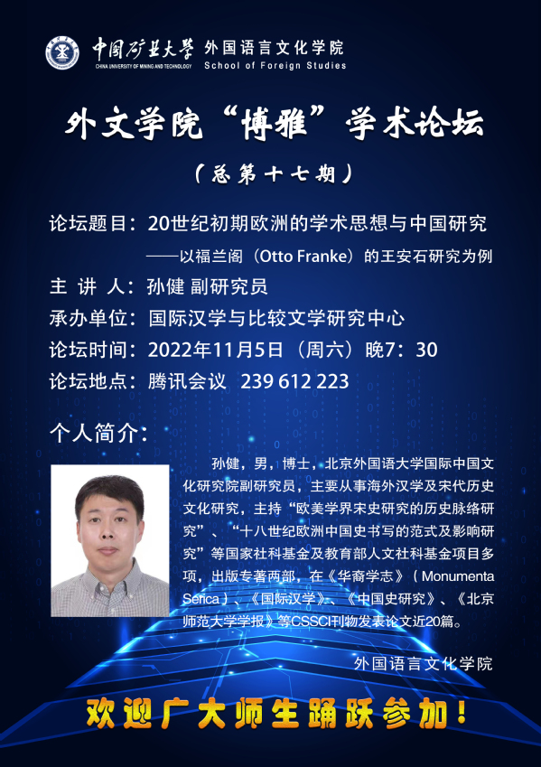 外文做爱直播 “博雅”学术论坛(总第十七期)20世纪初期欧洲的学术思想与中国研究——以福兰阁(Otto Franke)的王安石研究为例