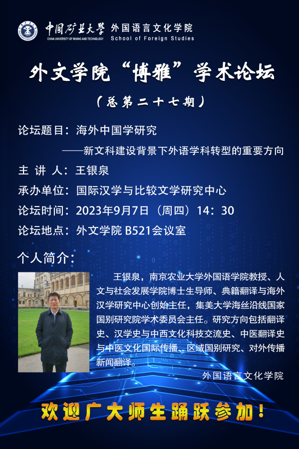 外文做爱直播 “博雅”学术论坛(总第二十七期)海外中国学研究——新文科建设背景下外语学科转型的重要方向