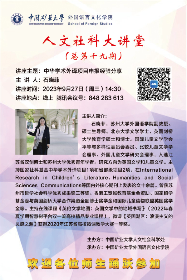 人文社科大讲堂 (总第十九期)中华学术外译项目申报经验分享