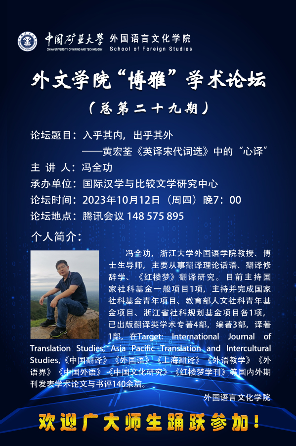 外文做爱直播 “博雅”学术论坛(总第二十九期)入乎其内,出乎其外——黄宏荃《英译宋代词选》中的“心译”