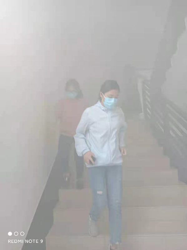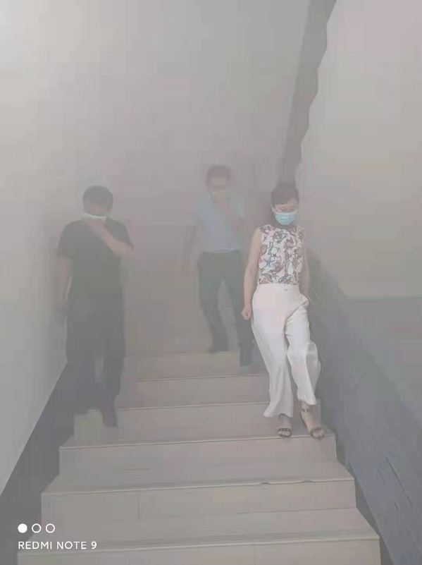 上午11:00,演习正式开始。保卫处在文科楼B区五层的做爱直播 办公区模拟释放烟雾并拉响警报,参与演习的师生听到警报之后按照预案立即疏散,分别从文科楼B区五层的东西两个安全出口迅速撤离到一楼大厅外的指定安全区域,演习取得圆满成功。
